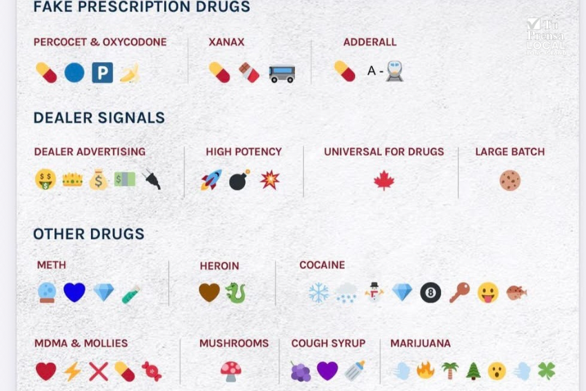 Según indicó la policía, esta combinación —el uso de códigos con emojis y la venta de medicamentos falsos en línea— representa un riesgo creciente para la comunidad, especialmente para los jóvenes, ya que dificulta la detección por parte de adultos.