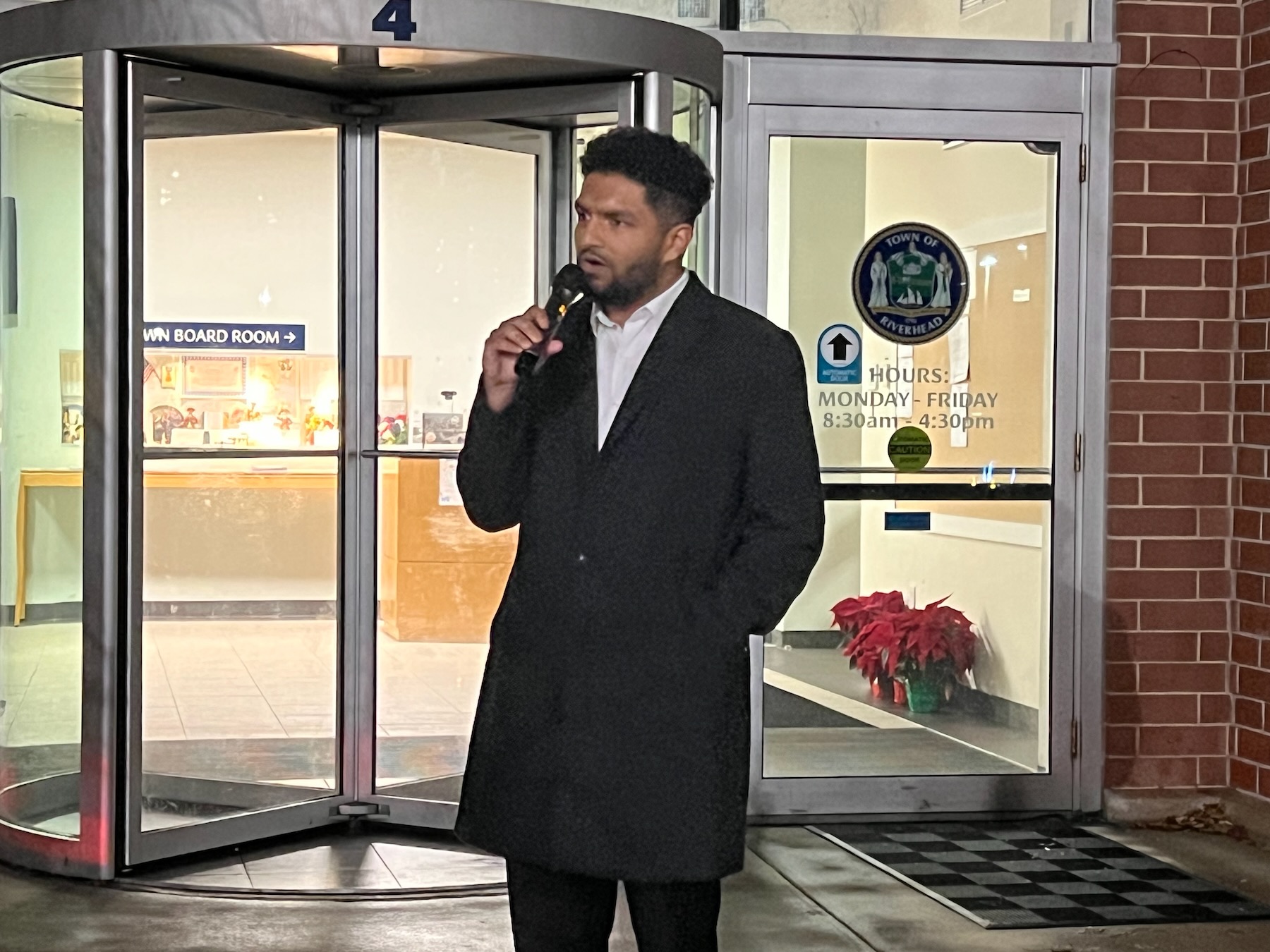 Osman Canales durante la vigilia Shine The Light en Riverhead el 9 de enero de 2026. Foto: María del Mar Piedrabuena/Tu Prensa Local