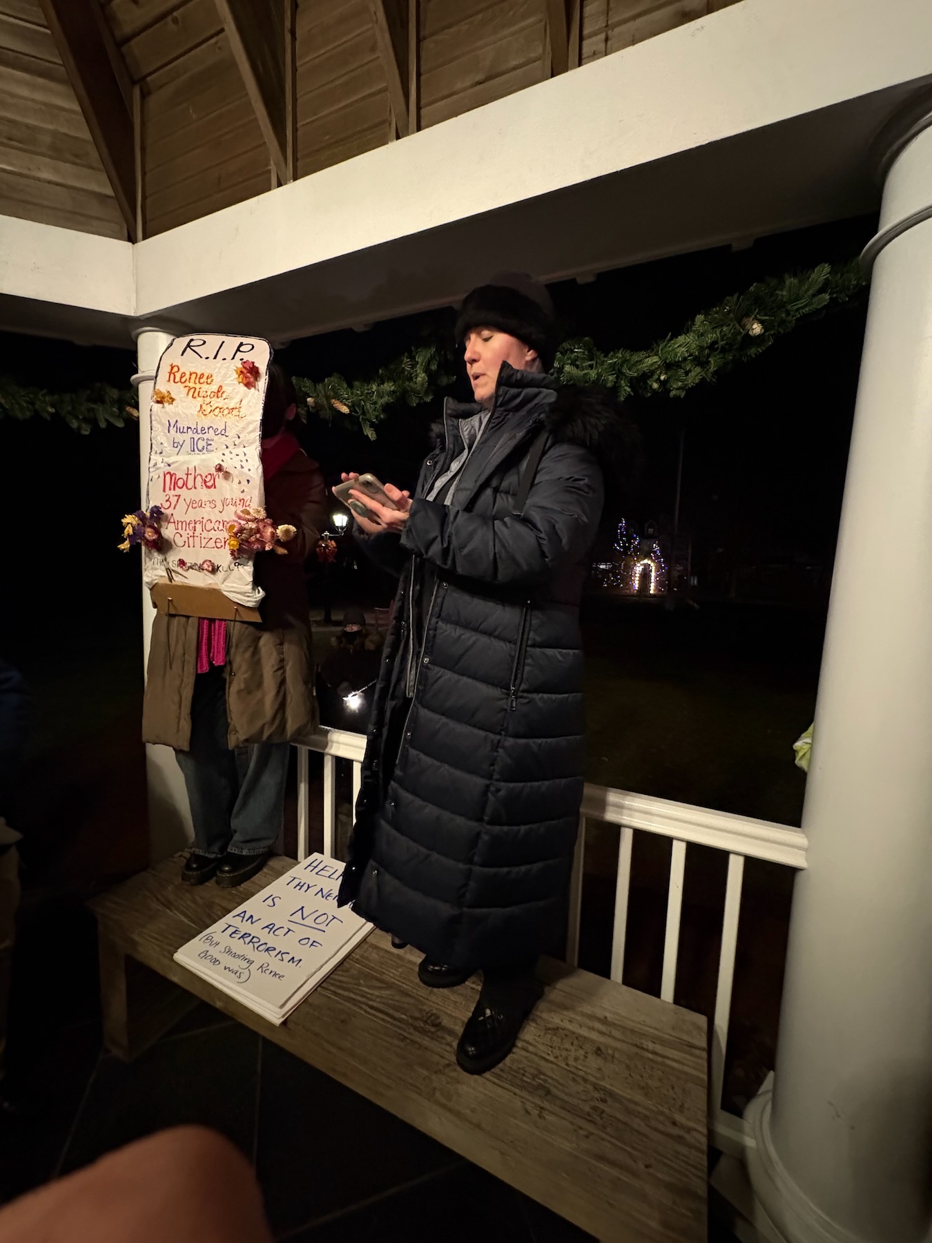 “En solo un día, nuestra red logró coordinar siete vigilias en siete pueblos del East End,” dijo. “Encontramos líderes religiosos, compartimos la poesía de Renee Good y guardamos un momento de silencio juntos. Encendimos más que velas y linternas; encendimos una chispa que debe seguir creciendo”.
