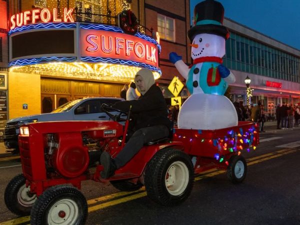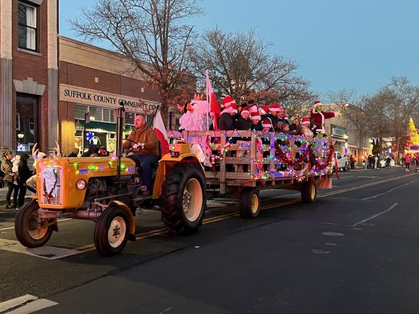 Las celebraciones comenzaron a última hora de la tarde, cuando el desfile organizado por el Club de Leones de Riverhead arrancó alrededor de las 4:30 de la tarde desde la Ostrander Avenue. Tractores antiguos avanzaban detrás de autos clásicos, seguidos de camiones de bomberos adornados con luces y guirnaldas que provocaban exclamaciones cada vez que sonaba una sirena.