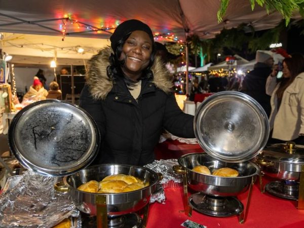 Las familias empezaron a llegar al campus del Ayuntamiento incluso antes de que terminara el desfile, aprovechando para recorrer el primer East End Merry Mart, un mercadillo navideño con una variedad de tienditas, inaugurado a las 3 de la tarde. Los puestos ofrecían accesorios, artesanías, arte local y recursos para la comunidad, mientras que los camiones de comida atraían a la gente con sus deliciosos aromas.