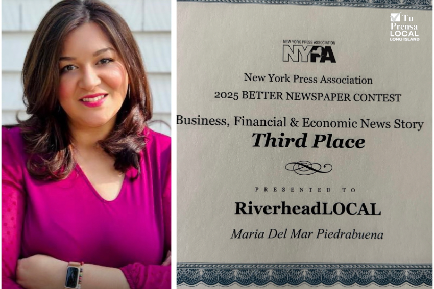 María Del Mar Piedrabuena, editora de Tu Prensa Local, ha sido galardonada con un premio de la Asociación de Prensa de Nueva York, por un trabajo publicado en junio de 2025, por nuestros aliados de RiverheadLOCAL.