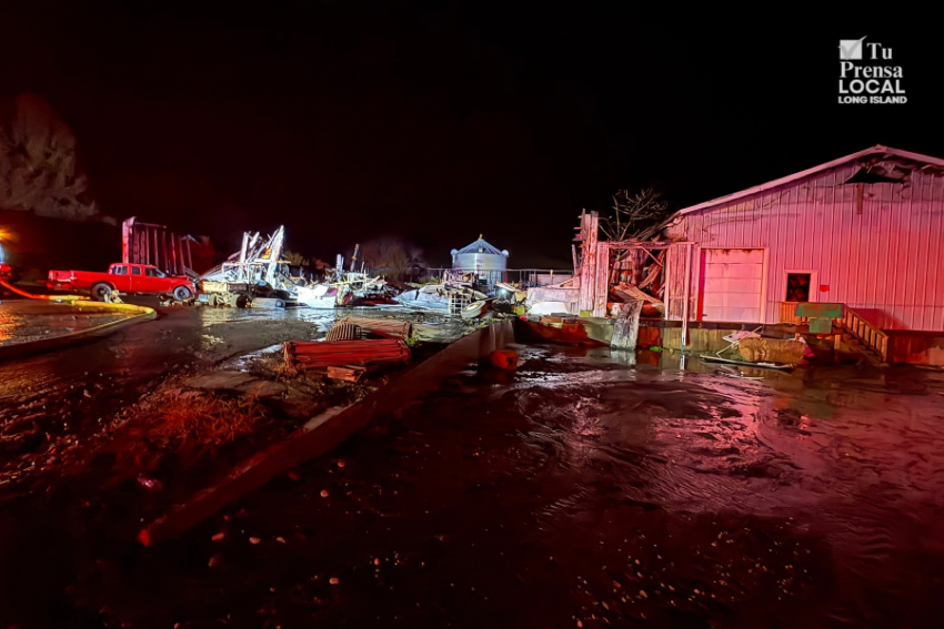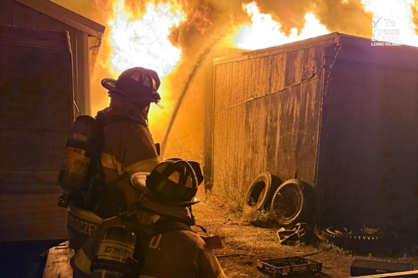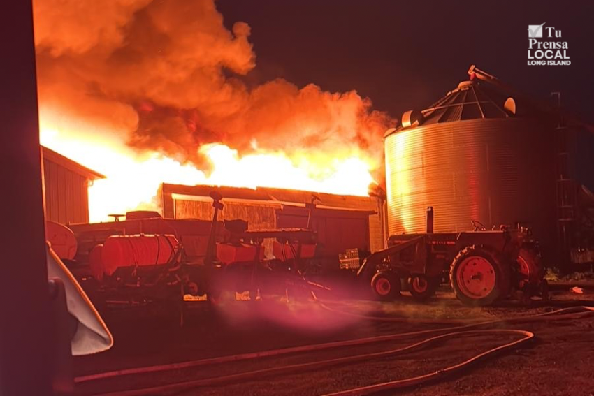 A las 4:55 de la tarde se reportó un fuego que consumía gran parte de una estructura del granero, ubicado en el 4976 de Sound Avenue en Northville, donde varias unidades de la Policía de Riverhead y numerosos departamentos de bomberos del East End trabajaron durante horas para controlar las llamas, rescatar animales y atender a personas afectadas por el humo.
