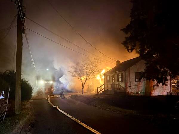 Incendio en una casa en Wading River el 20 de diciembre de 2025. Foto cortesía del Departamento de Bomberos de Wading River.
