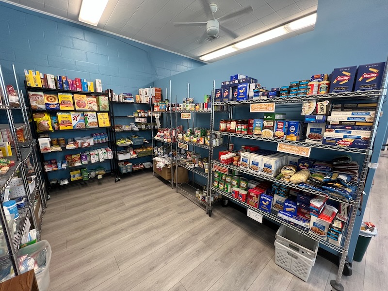 Los estantes están abastecidos, pero los clientes son escasos en el banco de alimentos de St. John en Riverhead. Foto: Maria Del Mar Piedrabuena