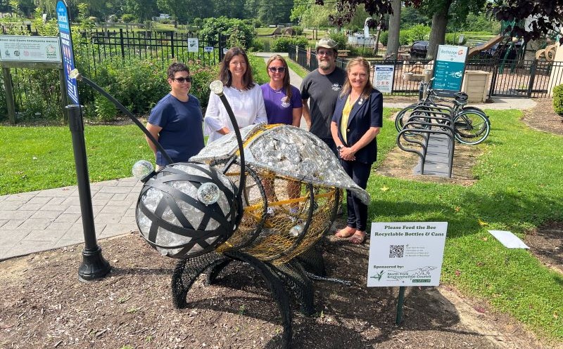 Hay una abeja gigante en el centro de Riverhead… y quiere tus botellas y latas vacías.